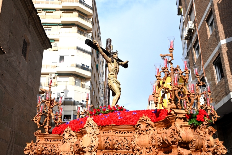 La primera levantá del paso del Santísimo Cristo del Amor se ha realizado en el interior de la Iglesia Parroquial de San Sebastián y ha sido en homenaje al policía local jubilado Nicolás Yedra, portador durante muchos años del banderín del Cristo, que está luchando contra una grave enfermedad.