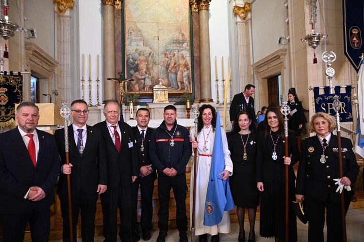 Ya en la calle, la alcaldesa ha realizado la primera levantá del paso de Nuestra Señora del Primer Dolor “para que lleve amor y esperanza a cualquier rincón donde haya alguien sufriendo, donde haya una guerra, y que nuestra Madre cuide de ellos igual que cuida de todos nosotros”.