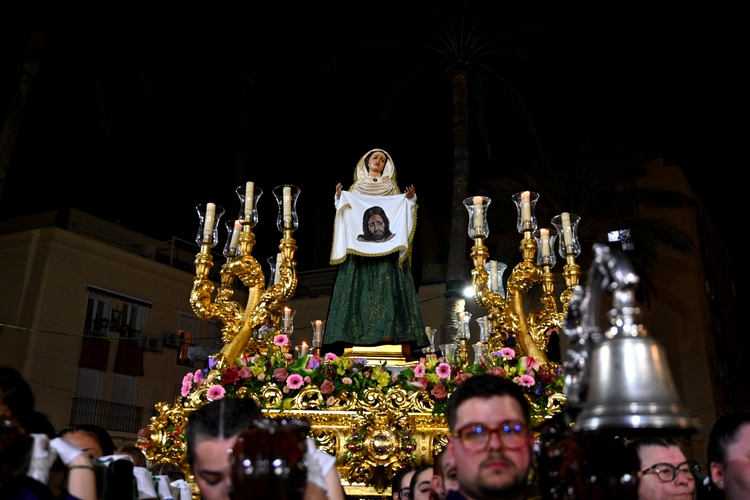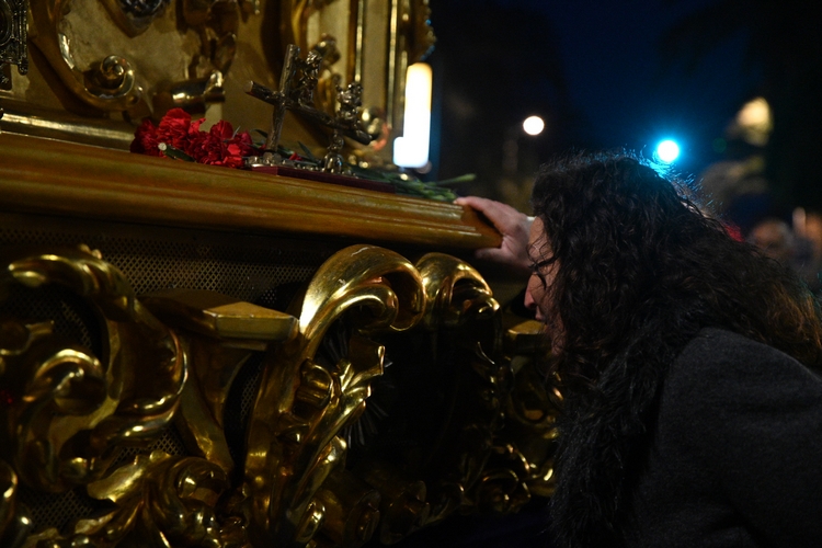 La alcaldesa de Almería, María del Mar Vázquez, ha realizado en esta noche de Jueves Santo la levantá de Nuestro Padre Jesús de Nazareno de la Hermandad del Encuentro en la Plaza Emilio Pérez (Circular).