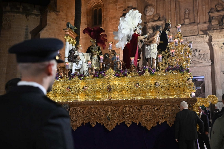 A primera hora de la tarde, y antes de su salida de la Catedral de la Encarnación, la alcaldesa, María del Mar Vázquez, ha realizado, por Almería, la primera levantá del paso de Jesús Cautivo de Medinaceli de la Hermandad del Prendimiento.