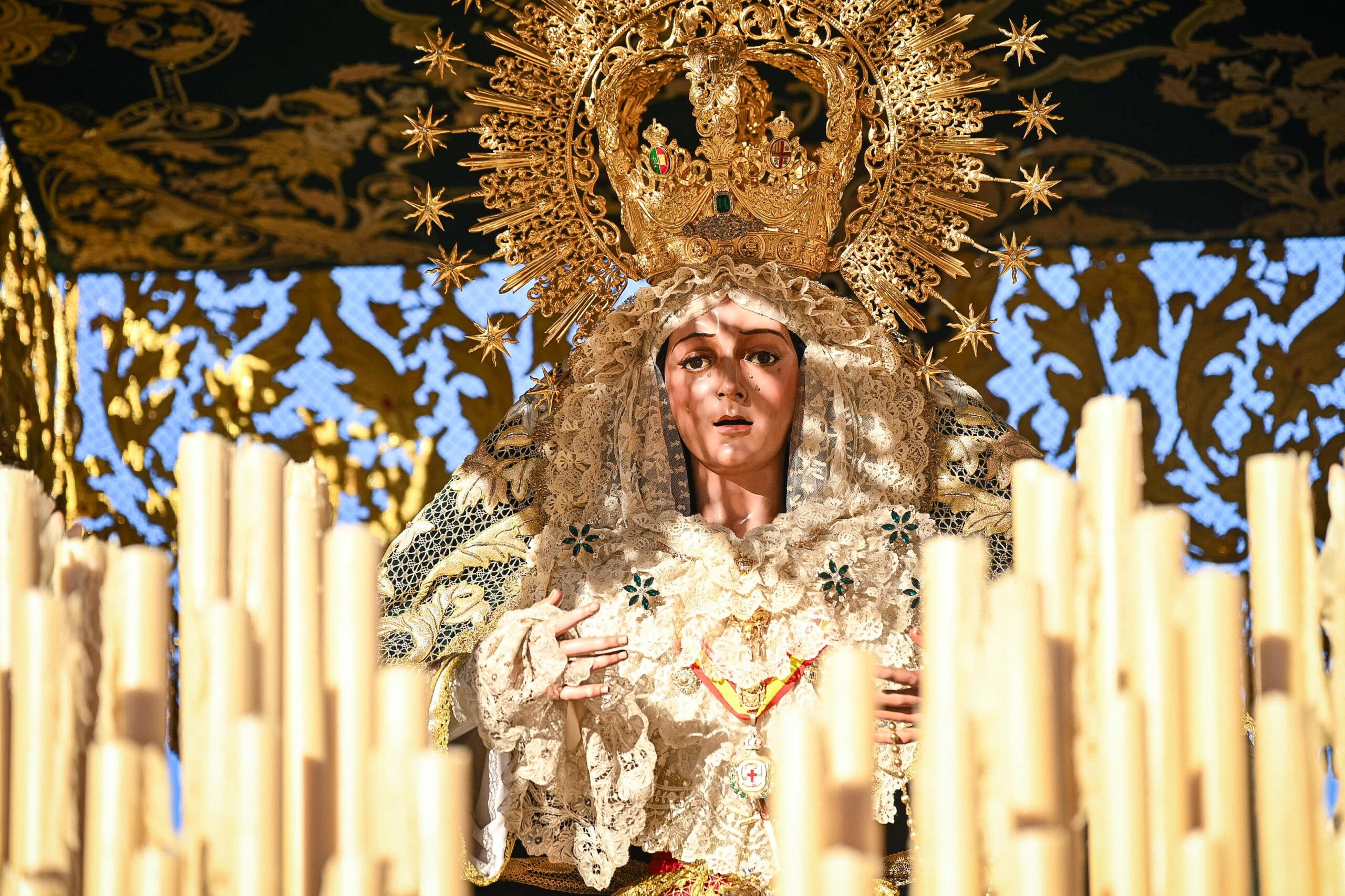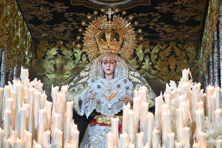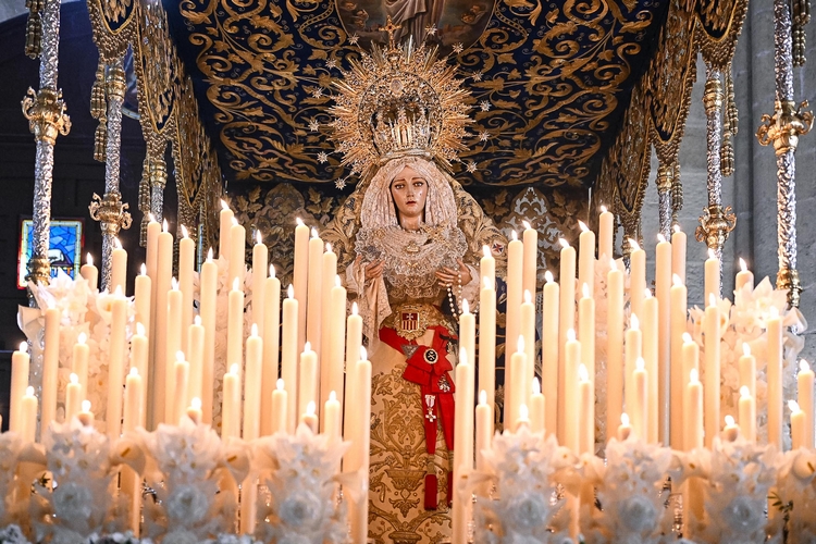 Posteriormente, se ha desplazado hasta la iglesia parroquial de San Ildefonso, donde ha realizado la levantá de María Santísima de la Esperanza Macarena y Nuestra Señora del Santo Rosario.