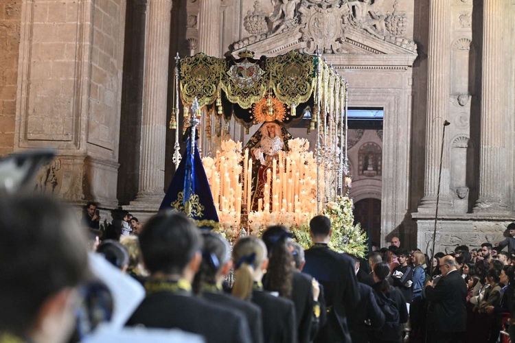La alcaldesa presente en cada paso este Miércoles Santo y también en la tribuna de la Plaza de la Catedral.