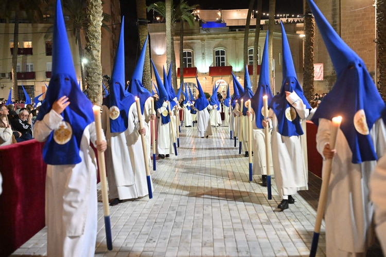 El Miércoles Santo ha vuelto a llenar las calles de la ciudad de Almería de pasión, fervor y devoción en una jornada en la que han procesionado la Hermandad Marianista del Santísimo Cristo del Mar, María Santísima de las Lágrimas, San Juan Evangelista y Santa María Magdalena en el Monte Calvario; la Real e Ilustre Hermandad Sacramental y Cofradía de Nazarenos de Nuestro Padre Jesús del Prendimiento, Jesús Cautivo de Medinaceli y Nuestra Señora de la Merced; la Hermandad y Cofradía de Nazarenos de Nuestro Padre Jesús de la Sentencia, María Santísima de la Esperanza Macarena y Nuestra Señora del Santo Rosario; y la Real, Ilustre, Concepcionista y Universitaria Hermandad de Nazarenos de Nuestro Padre Jesús de la Oración en el Huerto y Nuestra Señora del Amor y la Esperanza.