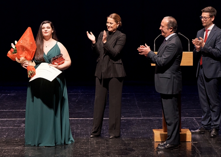 Larios convenció al Jurado con dos brillantes ejecuciones del Aria de Pamina (Die Zauberflöte, Mozart) y la polonesa “Me llaman la primorosa”, de la zarzuela El Barbero de Sevilla, de Giménez y Nieto. En virtud de este Primer Premio del Certamen Nuevas Voces la intérprete obtiene un premio ofrecido por la Real Maestranza de Caballería y la contratación de un recital en el Espacio Turina, uno de los mejores escenarios de Andalucía para disfrutar de formatos camerales. Larios también obtuvo otros reconocimientos, como el Premio de la Accademia del Bel Canto Roberto Celetti, de estreno en esta edición del Certamen, y el ya clásico Premio Especial de la ROSS.