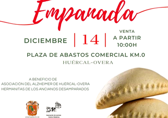 El municipio de Huércal-Overa celebrará el próximo sábado 14 de diciembre el tradicional Día de la Empanada, una actividad que se lleva realizando desde hace dos décadas por la Asociación de Vecinos del Centro Histórico con la colaboración del Ayuntamiento con el objetivo de mantener uno de los dulces tradicionales más importantes de la cocina huercalense: la empanada de almendra. Una cita que tiene un carácter solidario ya que los fondos recaudados se destinarán a la Asociación del Alzheimer y a la Residencia Virgen del Río de las Hermanitas de Los Ancianos Desamparados.