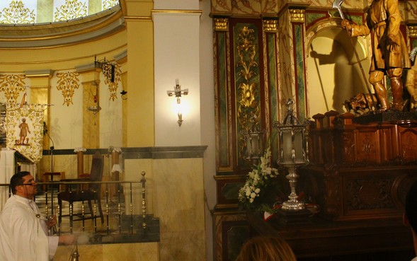 Los miembros de la Hermandad han sido los encargados de situar la imagen de nuestro patrón en su trono procesional para dar inicio del novenario que, a partir de hoy, se realizará en su honor, así como para cumplir con la habitual ofrenda que tiene lugar dentro de este acto.