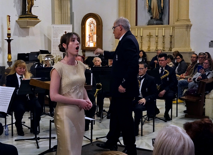 Con el previsible y celebrado ‘aforo completo’ en la Parroquia de San Sebastián, el XII Ciclo de Música Sacra de Almería echó anoche a andar con el primero de sus once conciertos, que se desarrollarán en distintos templos de la ciudad (excepto dos en el Auditorio) hasta el próximo 10 de abril. La Banda Municipal de Música de Almería, dirigida una vez más de manera brillante por su director titular José Solá Palmer, fue la encargada de realizar el concierto inaugural, contando además con el acompañamiento de gran calidad de la soprano Elena Gallardo Quereda en algunas composiciones que se combinaron con las piezas instrumentales.