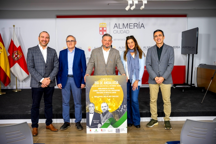 Esta mañana, el concejal delegado del Área, Diego Cruz, acompañado por los directores José Solá Palmer y Fran Escobar y el vicedirector del Conservatorio, José Matías Fernández, y la jefa de extensión cultural del Conservatorio, Mar Bernal, ha presentado este concierto que, además, es de entrada libre hasta completar aforo, si bien se puede reservar el asiento adquiriendo la invitación en la taquilla municipal del Teatro Apolo o a través de la web habitual https://almeriaculturaentradas.es/, en este caso con un coste de 0,50 euros en concepto de gastos de gestión.
