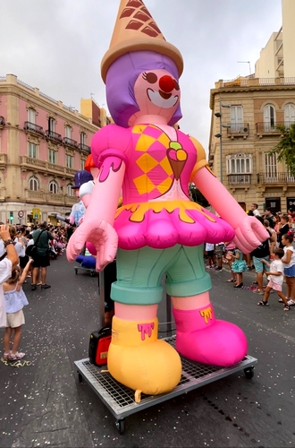 Una de las grandes atracciones es la presencia de dos pasacalles, el primero ‘Paseantes’, unos divertidos zancudos con música, y el segundo, seis enormes figuras de Playmobil, hinchables con motivos circenses.