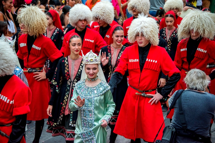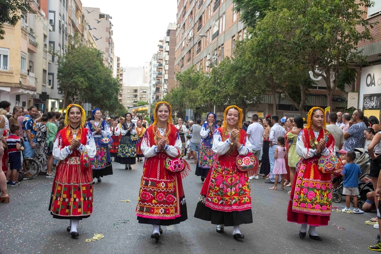 En la Batalla de Flores de #AlmeríaenFeria las asociaciones de vecinos juegan un papel protagonista, y en esta edición han participado doce colectivos vecinales con un total de 180 personas. También se han contemplado los bailes de los participantes en el 39º Festival Internacional de Folclore, procedentes de Egipto, Badajoz, Chile, Georgia, Portugal, Bosnia-Herzegovina, Turquía y, por supuesto, el grupo de folclore municipal Virgen del Mar. Más de 250 bailarines, cerrando la comitiva el pasacalles Kalesi, compuesto por otros 40 miembros. Muy vistosos y aplaudidos.