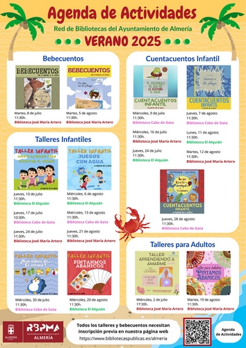 La entrada para todas las actividades siempre es libre hasta completar aforo y en algunos casos es necesario reservar la plaza a través de la web https://www.bibliotecaspublicas.es/almeria, donde también se puede consultar toda la programación y posibles cambios de última hora.