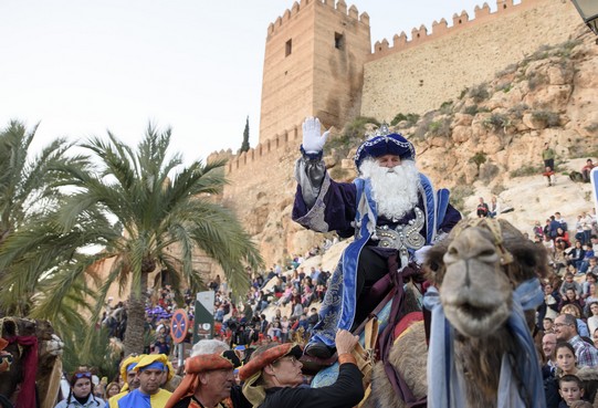 Por la tarde, el séquito ha partido en camello desde la Alcazaba, recorriendo el centro histórico: calles Almanzor, La Reina, Arráez, Plaza de la Administración Vieja, Mariana, Tiendas y Puerta de Purchena. En la Casa de las Mariposas han sido recibidos por el alcalde, Ramón Fernández-Pacheco, que ha pedido para los almerienses salud, trabajo y mucha felicidad. Y, rodeados de miles de almerienses, Melchor, Gaspar y Baltasar han saludado desde el balcón de este edificio histórico. Posteriormente se han subido a la Cabalgata y esta noche concluirán su estancia en Almería con la entrega de los regalos solicitados en las cartas por todos los niños de Almería. Han solicitado que les dejen en cada hogar tres vasos de agua y roscón para reponer fuerzas, y que los más pequeños se vayan a dormir pronto. Mañana, día 6, los niños abrirán ilusionados sus regalos. ¡Feliz Reyes Magos!, el broche de oro del programa #Navidadatugusto, creado por el Área de Cultura, Educación y Tradiciones del Ayuntamiento de Almería.