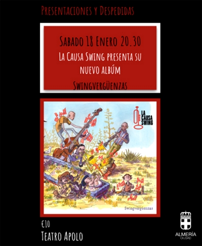 Las programaciones de temporada del Área de Cultura, Tradiciones y Fiestas Mayores del Ayuntamiento de Almería tienen un hueco, especialmente en las temporadas de otoño, invierno y primavera, para la escena local, siendo el Teatro Apolo uno de los habituales escenarios para compañías de teatro (con el Programa Estable de Teatro Aficionado), de danza (este año iniciado el ciclo ‘Trasladanza’) o para la presentación de nuevos discos o giras de bandas almerienses. Lo volverá a ser este sábado, 18 de enero, con el concierto a las 20.30 horas del grupo La Causa Swing, que presentará su segundo y nuevo álbum ‘Swingvergüenzas’, lleno de canciones propias que definen “con sabor a sur y a mar”.