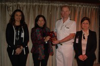 Seguidamente, ha tenido lugar el intercambio de placas y distintivos entre la tripulación de ‘The World’ y la delegación visitante, tras la que han brindado para que disfruten de su estancia en la ciudad y para que vuelvan a recalar en el puerto de la ciudad. Esta circunstancia, por las características de las rutas que hace el barco, se da cada tres años, tiempo en el que el buque tarda en dar la vuelta al mundo.