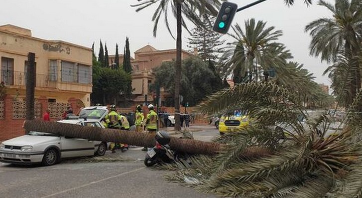 La entidad concesionaria del servicio de mantenimiento de parques y jardines de Almería, la UTE STV Albaida, ha achacado a los “fuertes vientos” y a la “lluvia acumulada” el “vencimiento” de la palmera que el pasado 24 de marzo se desplomó en la avenida Cabo de Gata de la capital y acabó con la vida dos hombres que circulaban a bordo de un ciclomotor y un turismo, toda vez que hirió a una tercera que viajaba como copiloto del coche.