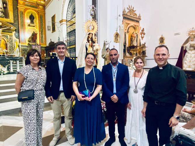 La consejera de Agricultura, Pesca, Agua y Desarrollo Rural, Carmen Crespo, ha asistido a los actos del segundo día de triduo en honor a la Virgen del Carmen que se han celebrado en la ciudad de Adra acompañada por el alcalde de la ciudad, Manuel Cortés, la teniente de alcalde, Mari Paz Fernández, así como por distintos miembros de dicha Hermandad.