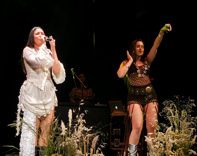Hace tiempo que las fronteras estilísticas se han difuminado y no es extraño que jóvenes que han crecido escuchando sin reparos ni prejuicios varios estilos musicales después quede reflejado a la hora de escribir sus propias canciones. Y la introducción de Lola Flores ya daba muchas pistas. A solas con la guitarra de Aitor Gómez y los coros de Paula, Vera GRV empezó solemne, al estilo clásico, sensibilidad a flor de piel con la grácil “Ron” y con los aires de bolero de “Sola”, mientras que “Flores” fue presentada como ejemplo de superación al ser una de sus primeras canciones, compuesta hace tres años.