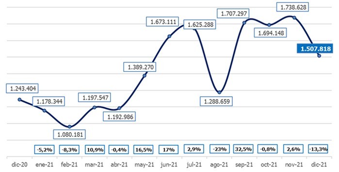 La recta final del año supone los niveles más altos de contratación temporal, alrededor de los 1,7 millones de firmas, aunque, ya en diciembre, el volumen se contrajo, afectado por el comienzo de la ola que sufrimos actualmente.