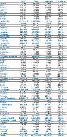 Con incrementos más moderados, pero aún por encima de la media nacional (20%), se encuentran Aragón (23,1%), Catalunya (22,1%), Asturias (21,7%), Galicia (21,6%), Euskadi (21,3%), la Comunidad Valenciana (20,9%), Castilla-La Mancha (20,7%) y Castilla y León (20,5%).