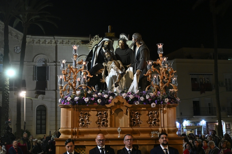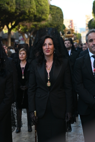 La Corporación municipal, presidida por la alcaldesa de Almería, María del Mar Vázquez, ha acompañado a la Real e Ilustre Hermandad del Santo Sepulcro y Nuestra Señora de los Dolores que, como cada Viernes Santo, ha salido en procesión desde la Iglesia de San Pedro Apóstol con las imágenes de Cristo Yacente y Nuestra Señora de los Dolores para recorrer el Centro Histórico de la capital. Una estación de penitencia que ha sido seguida, con mucha fe y respeto por miles de almerienses y visitantes durante todo su recorrido.
