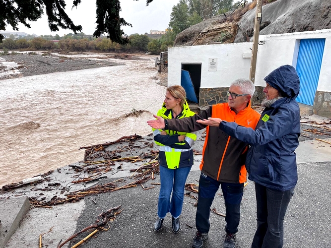 De forma Aránzazu Martín se ha desplazado hasta la Comarca del Almanzora, junto a la delegada de Fomento, Articulación del Territorio y Vivienda, Dolores Martínez, y el delegado de Inclusión Social, Juventud, Familias e Igualdad Francisco Bellido. Martín ha comprobado los numerosos desperfectos que se han vivido en municipios como Olula del Río, Macael, Fines y Armuña. Además, ha podido conocer la situación de la variante de Serón, “que ha sido cortada por un socavón que cubre toda la calzada en la A334 en el punto kilométrico 32. Un tramo que ha sido cortado y en el que se ha organizado un desvío alternativo por la carretera de acceso oeste a Serón y salida por el acceso este A1178 hasta poder alcanzar la A334 de nuevo” ha detallado la delegada.