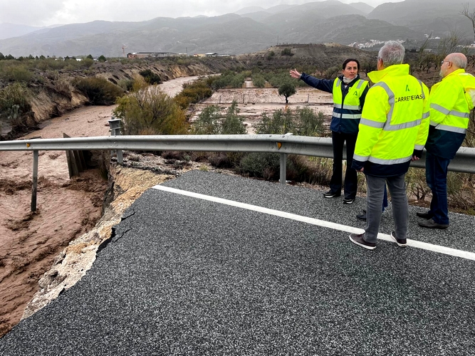 De forma Aránzazu Martín se ha desplazado hasta la Comarca del Almanzora, junto a la delegada de Fomento, Articulación del Territorio y Vivienda, Dolores Martínez, y el delegado de Inclusión Social, Juventud, Familias e Igualdad Francisco Bellido. Martín ha comprobado los numerosos desperfectos que se han vivido en municipios como Olula del Río, Macael, Fines y Armuña. Además, ha podido conocer la situación de la variante de Serón, “que ha sido cortada por un socavón que cubre toda la calzada en la A334 en el punto kilométrico 32. Un tramo que ha sido cortado y en el que se ha organizado un desvío alternativo por la carretera de acceso oeste a Serón y salida por el acceso este A1178 hasta poder alcanzar la A334 de nuevo” ha detallado la delegada.