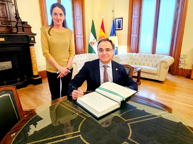 La delegada de Gobierno de la Junta de Andalucía en Almería ha recibido la visita del nuevo rector de la UAL, José Céspedes, quien ha firmado en el libro de honor de la institución autonómica. Martín ha agradecido esta primera toma de contacto, poniendo de manifiesto la buena sintonía que hay entre ambas administraciones, que trabajan de la mano en numerosos proyectos.