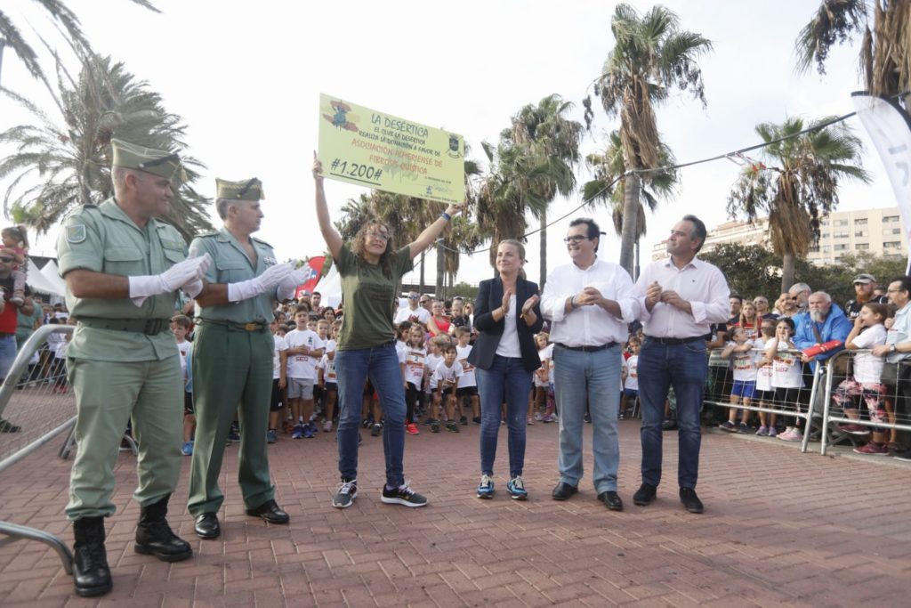 La solidaridad también ha tenido su protagonismo en esta cita deportiva. La carrera infantil ha comenzado con la entrega del cheque solidario de 1.200 euros para la Asociación Almeriense de Fibrosis Quística.
