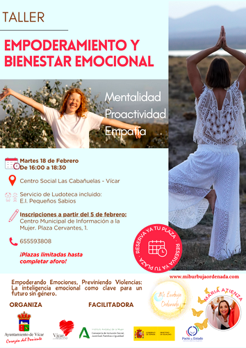 Este taller, que se enmarca dentro de las actividades del proyecto de Pacto de Estado del Ministerio de Igualdad, está dirigido a mujeres de todas las edades que deseen adquirir nuevas herramientas y potenciar su inteligencia emocional y autoestima.