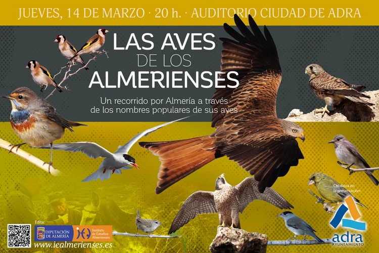 El próximo 14 de marzo, a las 20:00 horas, el Auditorio Ciudad de Adra acogerá la inauguración de la exposición ‘Las aves de los almerienses. Un recorrido por Almería a través de los nombres populares de sus aves’. Una muestra, con entrada totalmente gratuita, que llega a la ciudad milenaria de la mano del Instituto de Estudios Almerienses y del Área de Cultura, Cine e Identidad Almeriense de la Diputación Provincial de Almería, coordinada por el abderitano Mariano Paracuellos y en colaboración con el Ayuntamiento de Adra.