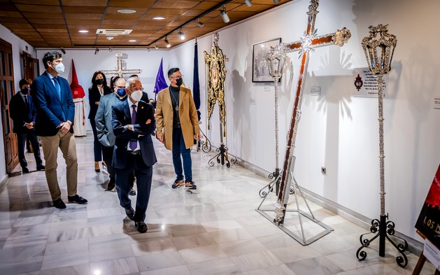 El alcalde de Roquetas de Mar, Gabriel Amat, acompañado por el concejal de Educación, Cultura y Juventud, Juanjo Salvador, junto al resto de concejales del equipo de Gobierno ha asistido a la inauguración de esta exposición con la que se pretende poner en valor el patrimonio que se ha ido creando en Roquetas de Mar a través de todas las hermandades, cofradías y mayordomías a lo largo de estos años.