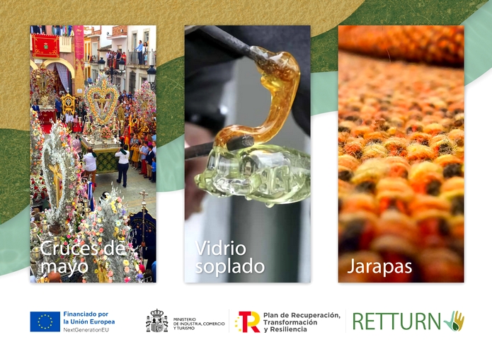 La sesión de trabajo dio comienzo con una introducción por parte de la FAMP, que además de contextualizar el proyecto Retturn en el marco del Programa “Experiencias Turismo España” del Plan de Recuperación, Transformación y Resiliencia, ha repasado sus objetivos y los impactos esperados en el territorio. A continuación, se han presentado los relatos de las tres experiencias turísticas desarrolladas en torno a las tradiciones escogidas en el planteamiento del proyecto: las Cruces de Mayo en Bonares (Huelva), la cultura del vidrio soplado en Castril y las jarapas como ejemplo de la economía circular en Torvizcón (ambos en Granada).