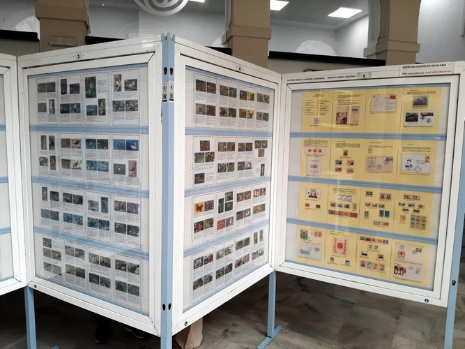 La segunda colección, “La Cruz Roja y Media Luna Roja”, ha sido elaborada por Manuel Ángel Calonge y ofrece un recorrido en doce capítulos por la historia y labor humanitaria de estas organizaciones. A través de una cuidada selección de sellos, sobres de primer día y matasellos conmemorativos, se abordan aspectos como los Principios Fundamentales, la Convención de Ginebra y los Derechos Humanos. La exposición también refleja la participación de la Cruz Roja en conflictos bélicos, rescates, campañas de vacunación y donación de sangre, así como el papel esencial del cuerpo de enfermeras. Los dos últimos capítulos están dedicados a la Cruz Roja Española y al Socorro Rojo Internacional.