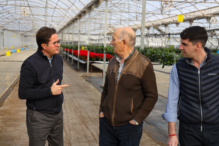 El primer edil ha recorrido las instalaciones junto a su presidente, Francisco Luque, para conocer de primera mano cómo está funcionando esta campaña la comercialización de Poinsetia o Flor de Pascua, puesto que consiste en una de las campañas más importantes del año para las empresas de este sector.