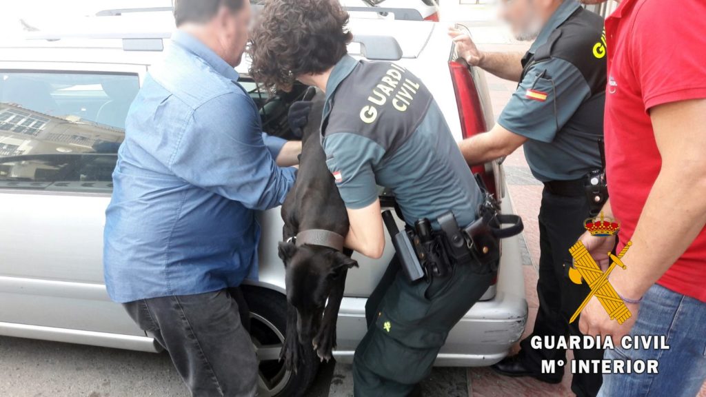 Al llegar los agentes de la Guardia Civil al lugar indicado, comprueban como en el maletero de un vehículo se encuentra un perro de la raza “Gallicus Canis” o “Galgo Español”, visiblemente nervioso, dándose la circunstancia de que el vehículo se encuentra completamente cerrado con la única ventilación de una apertura de un centímetro de las ventanillas delanteras.