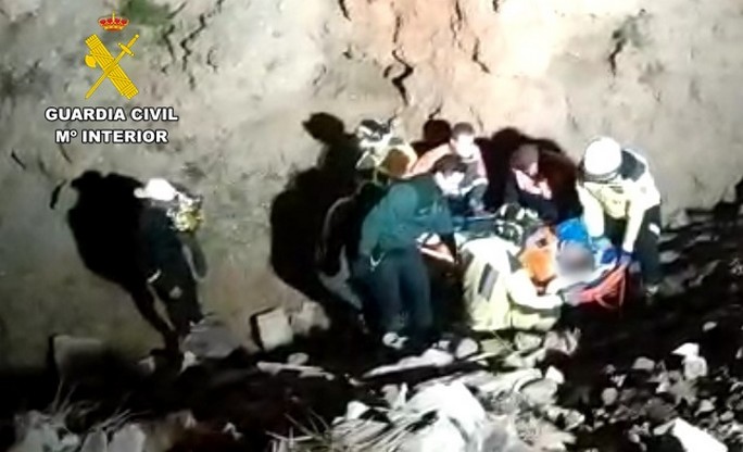 El pasado día 21 de febrero, tras conocer que una persona se accidenta en una escombrera en la Loma del Panadero de Barranquete – Níjar (Almería), efectivos de la Comandancia de la Guardia Civil de Almería, se personan en el lugar y tras localizar y comprobar que el accidentado se ha caído desde una altura de 10 metros y tiene fuertes dolores en diferentes partes del cuerpo, requieren de asistencia de personal sanitario y bomberos, tras un primer examen físico, se advierte la necesidad de realizar la mínima movilidad posible para evitar posibles secuelas, por lo que se solicita el apoyo de protección civil que aporta un sistema de cabestrante para concluir con éxito el recate, realizando su traslado al Centro Hospitalario Torrecardenas de Almería.