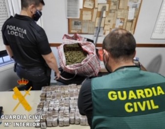 Tras inspeccionar y proceder al correspondiente registro, se intervienen 289 pastillas (30Kg) de hachís y 7,345Kg de cogollos de marihuana (Cannabis Sativa), 1 ventilador, 1 filtro anti olor, 1 extractor de aire, 2 cribadoras, 1 máquina envasadora al vacío, 1 caja de bolsas de envasado,1 báscula digital y 2 teléfonos móviles.