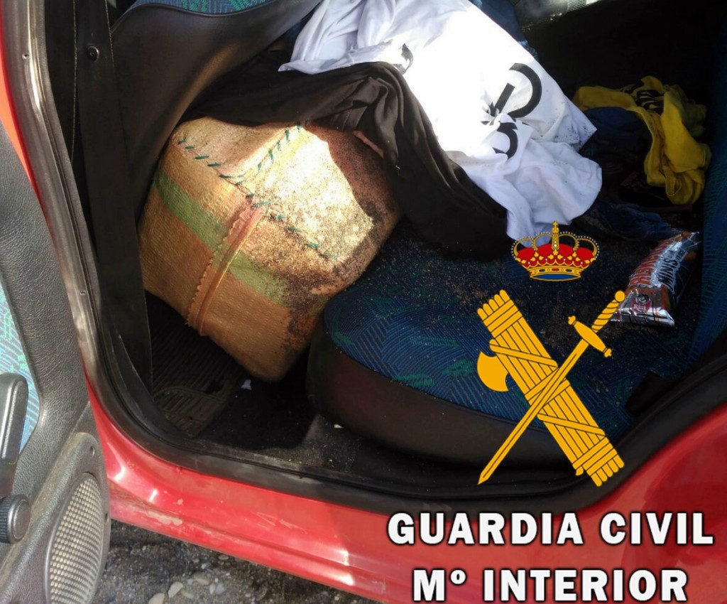 las 17:40 horas del pasado día 26 de mayo, la Guardia Civil de Almería ha detenido a C. J. F. C., de 30 años de edad y vecino de la barriada de Matagorda (El Ejido – Almería), y a un menor de edad, como presuntos autores de un delito contra la salud pública al incautarles 1 fardo de hachís de 45,6 kilogramos de peso.