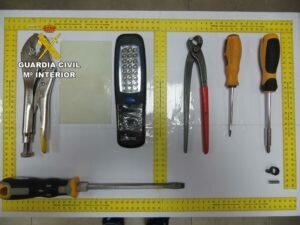 Los agentes de la Policía Local identifican a ambas personas, a la vez que comprueban como en la mochila que habían arrojado guardaban destornilladores, alicates, tenazas, guantes, linternas, así como la documentación personal de ambas personas.