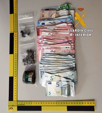 Como resultado de esta actuación, los agentes de la Guardia Civil detienen a esta persona como autor de un delito contra la salud pública e intervienen 60 gramos de hachís, marihuana y 3000 euros en monedas y billetes preparados para cambio.