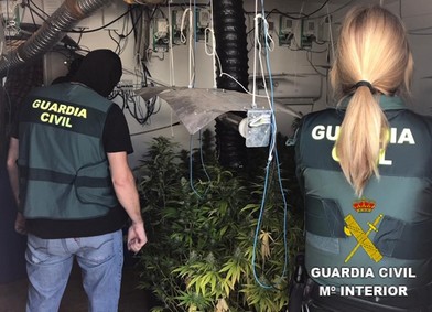 Paralelamente, tras el desarrollo de la investigación y concordado con la existencia de un procedimiento para la recuperación y posesión de una vivienda instada por la Comitiva Judicial, los agentes de la Guardia Civil, tras la inspección, constatan la existencia un cultivo indoor de Marihuana (Cannavis sativa) diseminado por todas las habitaciones y estancias de la vivienda de planta baja, en pleno rendimiento.