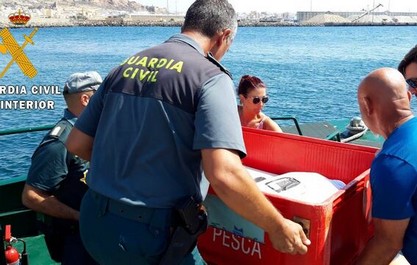 Agentes de la comandancia de la Guardia Civil de Almería prestaron protección y apoyo a personal técnico de Equinac en el varamiento de un delfín en el puerto de Aguadulce (Roquetas de Mar – Almería).
