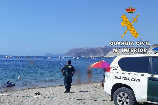 El pasado día 6 de agosto, efectivos de la Guardia Civil de Almería reciben el aviso por parte de Equinac (Organización sin ánimo de lucro responsable de las tareas de rescate y recuperación de fauna marina en la provincia) del hallazgo de un delfín mular (Tursiops truncatus) en una playa del término municipal de Nijar (Almería).