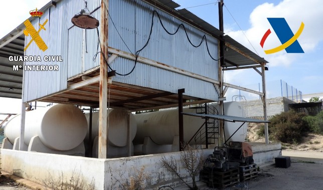 Los agentes realizan múltiples vigilancias y seguimientos al amparo del Juzgado de Instrucción número 1 de Huércal Overa (Almería), determinando que una mezcla de gasoil, aceites lubricantes y otros productos químicos se está distribuyendo a gran escala como gasoil de uso industrial evitando además el pago del impuesto que grava el consumo de gasóleos.