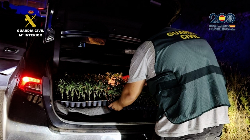 Una vez identificados los autores, se procedió a establecer un dispositivo operativo en el que se interceptó un vehículo en la autovía A7, con la ayuda de efectivos del Destacamento de Tráfico de la Guardia Civil de Almería, donde viajaban parte de los integrantes del grupo criminal investigado. Fruto de dicho operativo, se pudo detener a dos individuos integrantes del grupo criminal investigado, así como localizar en el interior del maletero del vehículo, un total de 146 esquejes de marihuana, indicio que habría la nueva hipótesis de que se estarían dedicando igualmente al cultivo y tráfico de marihuana.