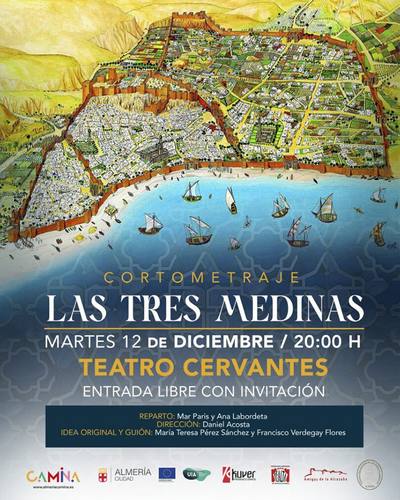 El laboratorio artístico de Kuver Producciones, con Amigos de la Alcazaba, la Federación Provincial de Peñas Flamencas de Almería, FEALTA-Federación Almeriense de Teatro Aficionado y el Ayuntamiento de Almería, son los responsables de los proyectos ‘Las tres medinas’ (cortometraje) y ‘Luz, Puerto, Mediterráneo’ (obra de teatro) que tienen como denominador común difundir y crear un producto audiovisual y escénico, artístico y atractivo, sobre la historia y el patrimonio almeriense. Sendas obras serán estrenadas esta semana en el Teatro Cervantes de la capital, en el marco del del proyecto europeo CAMINA (Community Awakening for Multicultural Integrative Narrative of Almería).