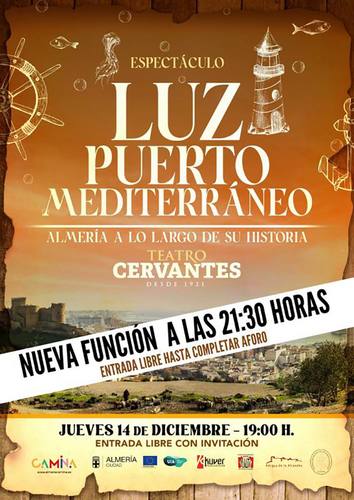 ‘Luz, Puerto, Mediterráneo’ es un espectáculo teatral y performativo que narra la historia de Almería a través de imágenes, textos, coreografías y música en vivo. Desde el punto de vista de los habitantes almerienses se revive la historia de la capital desde la época romana hasta la actualidad, pasando por cada episodio significativo que ha vivido Almería. Una oportunidad única de vivir la historia de la ciudad de manera cautivadora y emocionante. El espectáculo, dirigido por Aribaldi Circus, se podrá disfrutar el jueves, 14 de diciembre, en sesión doble: a las 19.00 horas (por invitación) y a las 21:30 horas (hasta completar aforo), dada la gran demanda y respuesta del público.