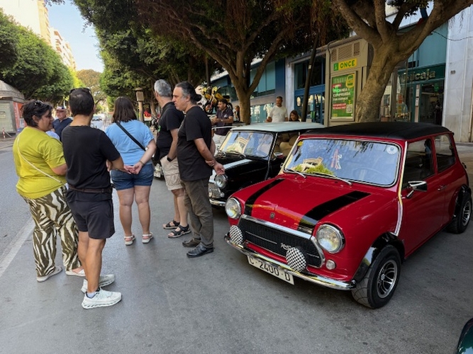 A su lado se encontraba la exposición de vehículos Mini Cooper, que empezaron a fabricarse en los años 70 y el último data del año 2000. El Club Mini Cooper Almería ha mostrado más de una decena de unidades para alegría de almerienses y turistas.