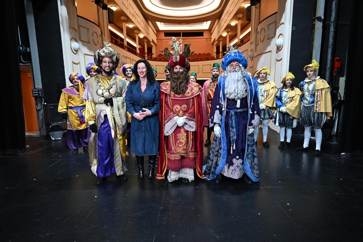 La alcaldesa de Almería, María del Mar Vázquez, ha saludado a sus Majestades de Oriente en el Teatro Apolo, y les ha trasladado que “la Cabalgata es uno de los momentos más especiales del año, una cita que une a toda la ciudad en torno a la ilusión, la esperanza y la magia de la infancia, y es lo que hemos decidido mantener, a pesar de las dificultades por el clima”.