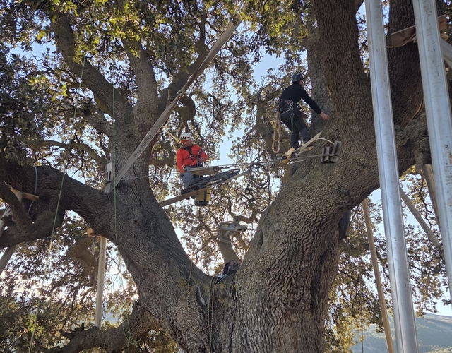 La Consejería de Sostenibilidad y Medio Ambiente instala un nuevo anclaje estático en la copa del árbol, declarado Monumento Natural